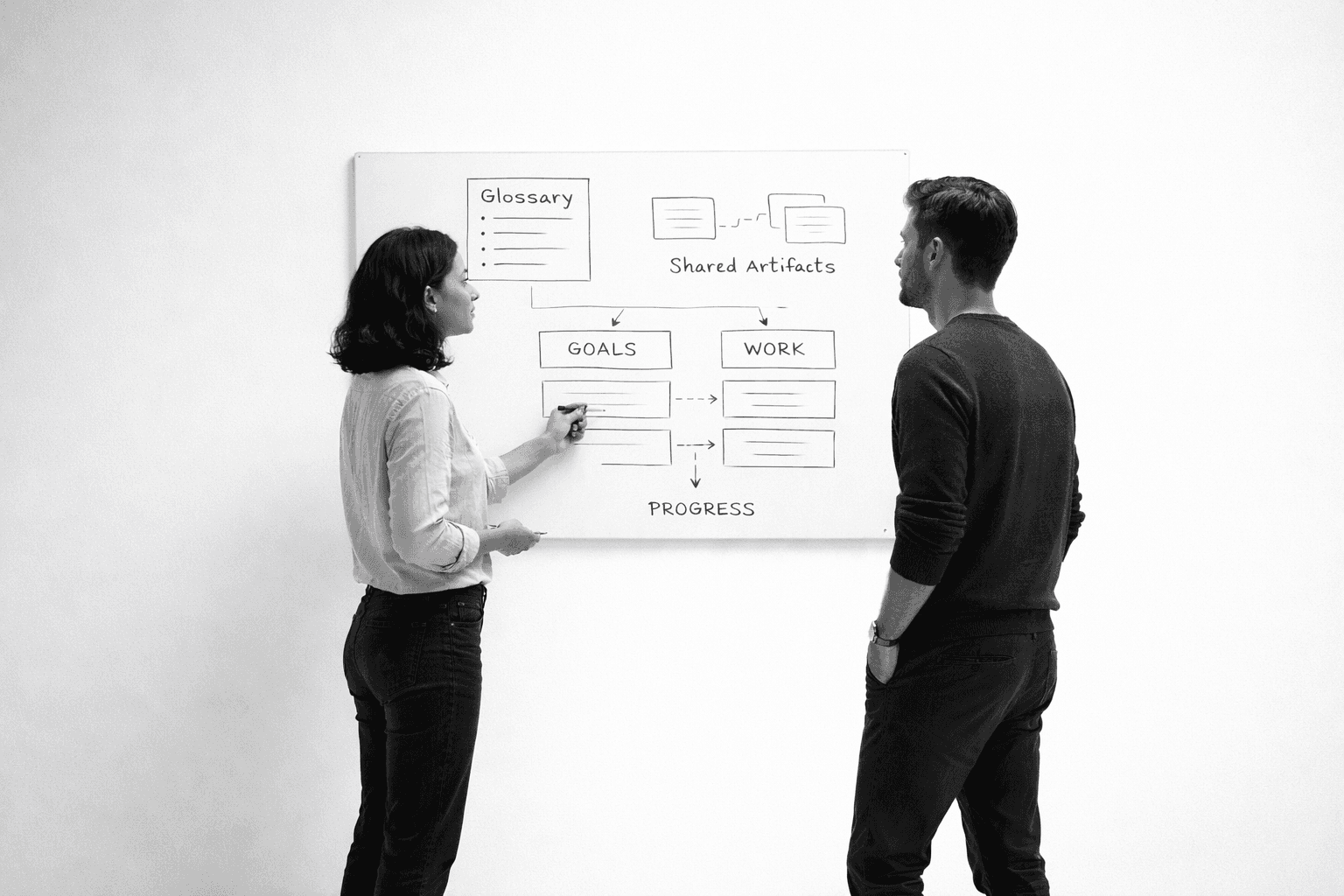 We make progress decision-ready by linking work to outcomes and running lightweight reviews that enable steering.